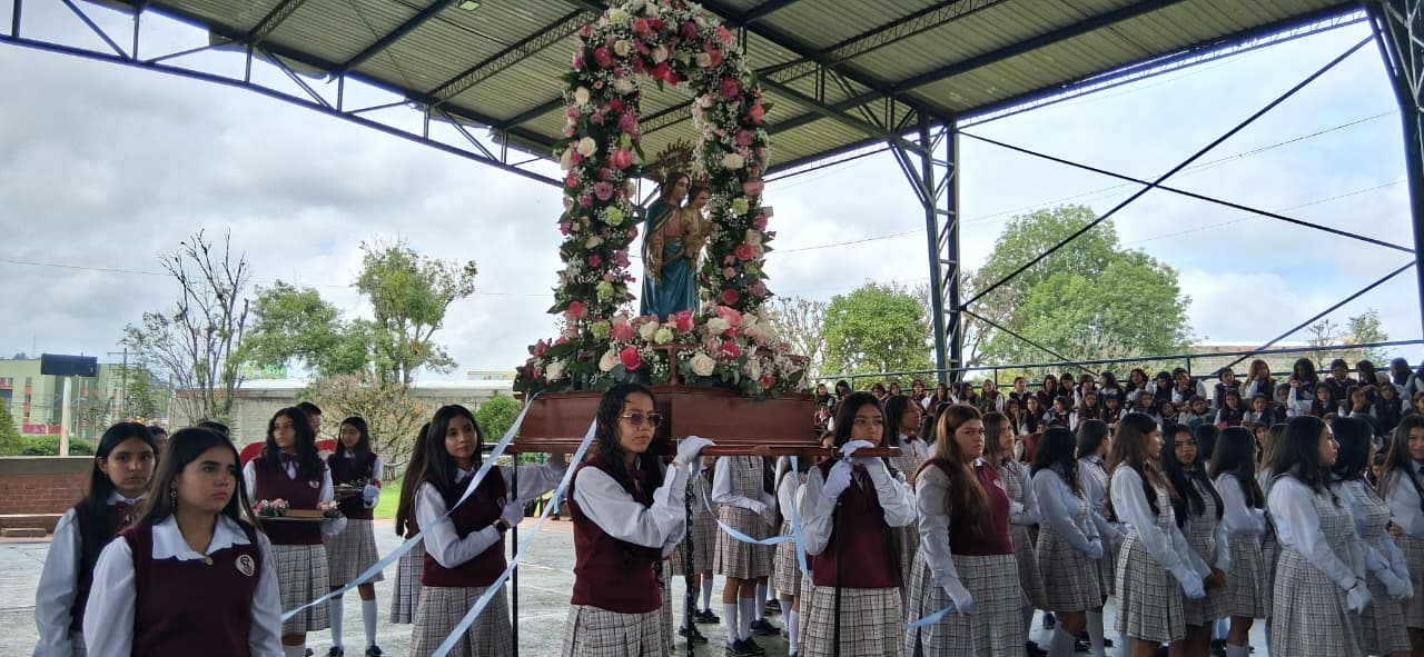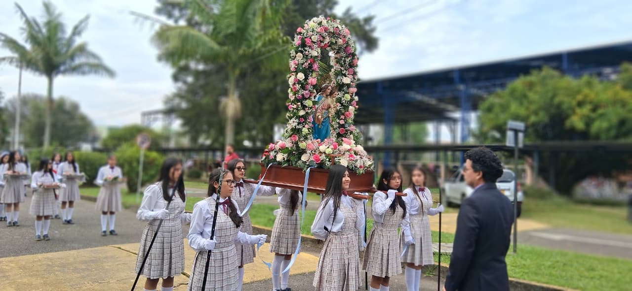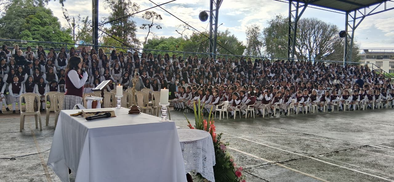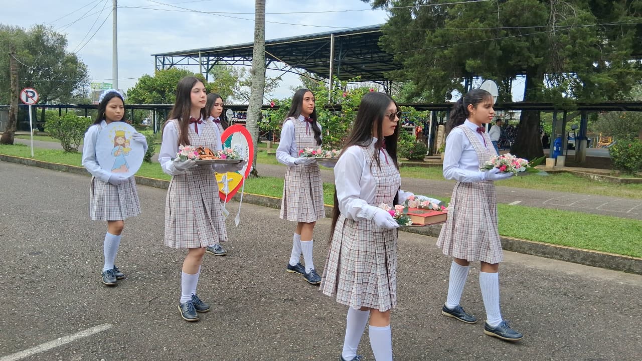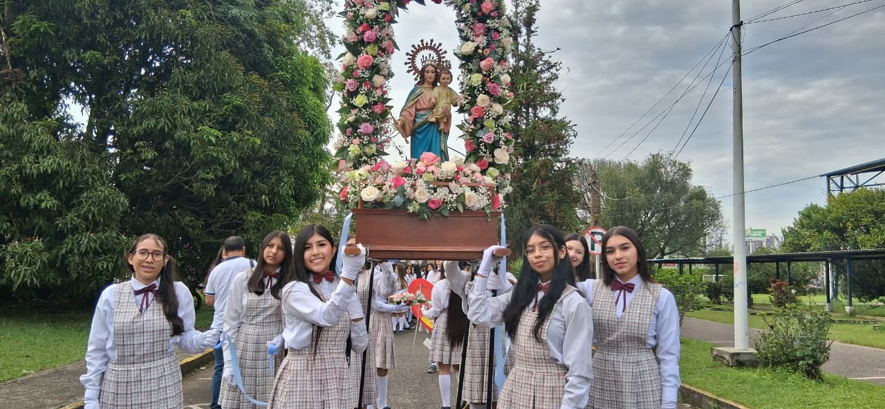 Uno de los momentos más significativos fue la entrega de la Santísima Virgen María Auxiliadora, un acto lleno de fe, devoción y amor. Las estudiantes de grado once, con humildad y profunda gratitud por todo lo recibido, entregaron la imagen de la Virgen a las niñas de grado décimo, confiándoles no solo un símbolo, sino una misión espiritual: continuar bajo el amparo de María, quien lo ha hecho todo y seguirá obrando maravillas en sus vidas.