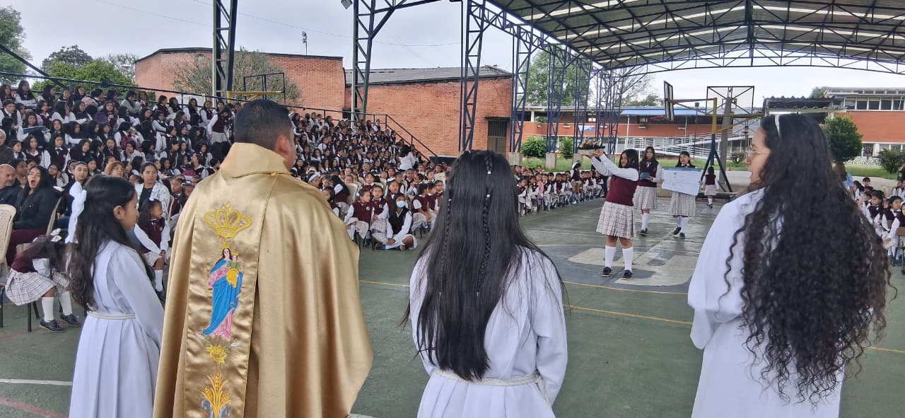 Durante la celebración, estudiantes, docentes y directivos se unieron en oración, renovando el compromiso de vivir los valores que Don Bosco nos enseñó: la alegría, la prevención, el acompañamiento y la confianza en Dios 💛